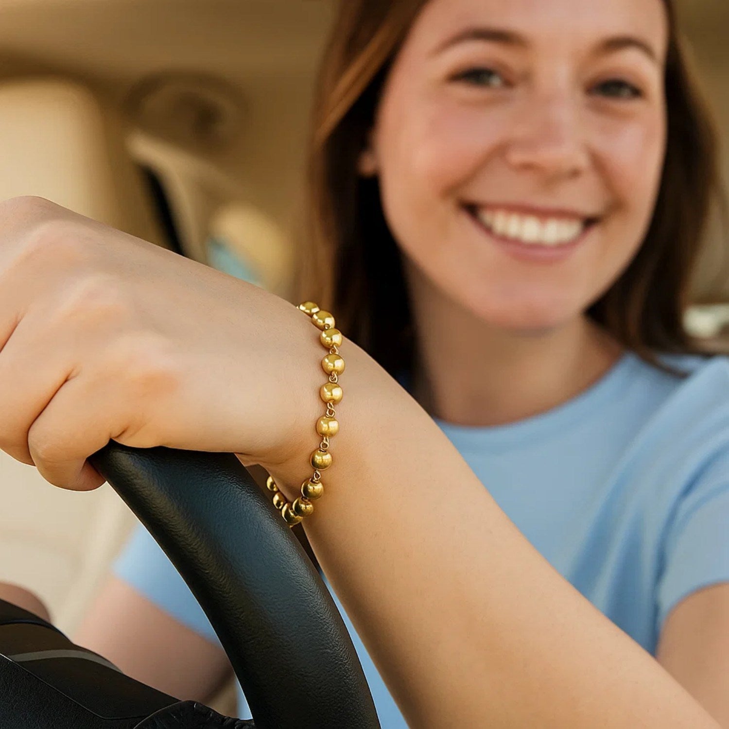 Elevate your elegance with this 14K yellow gold bracelet, featuring polished pebble beads that exude a timeless charm. Measuring 7 1/4 inches in length, it offers a comfortable fit secured by a reliable lobster clasp. The smooth, polished finish of each bead adds a touch of sophistication, making it perfect for both everyday wear and special occasions. Expertly crafted for lasting beauty, this bracelet is a versatile addition to any jewelry collection.